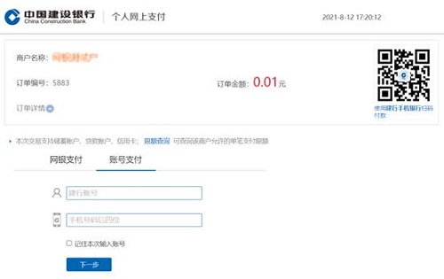 首次使用手机银行账号支付功能进行网上支付时,可通过页面引导自动开通“账号支付”功能,并完成订单支付。具体操作流程如下: